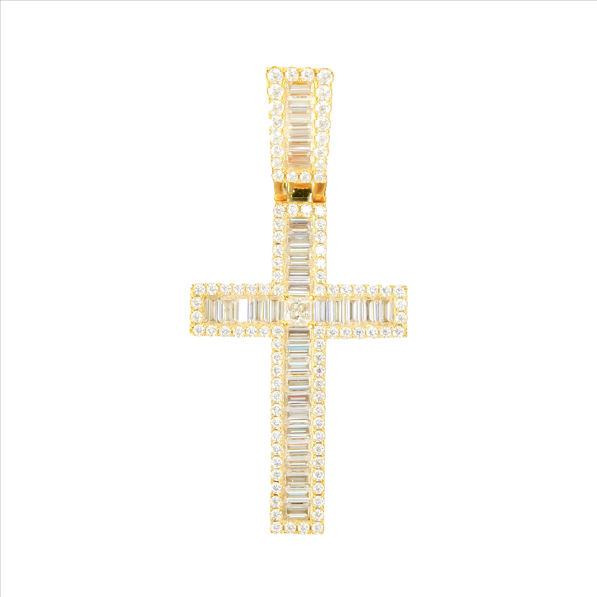 Baguette Cross Pendant (Yellow Gold)